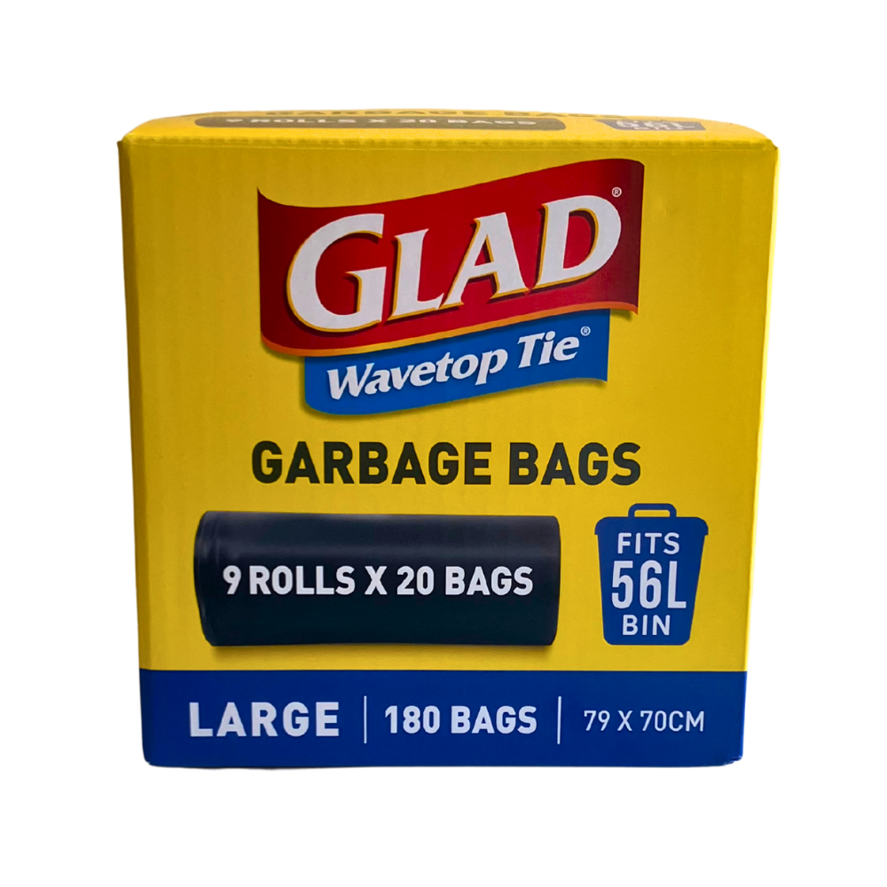 Glad Wavetop Tie Large Garbage Bags, 79 x 70cm, 180 Bags